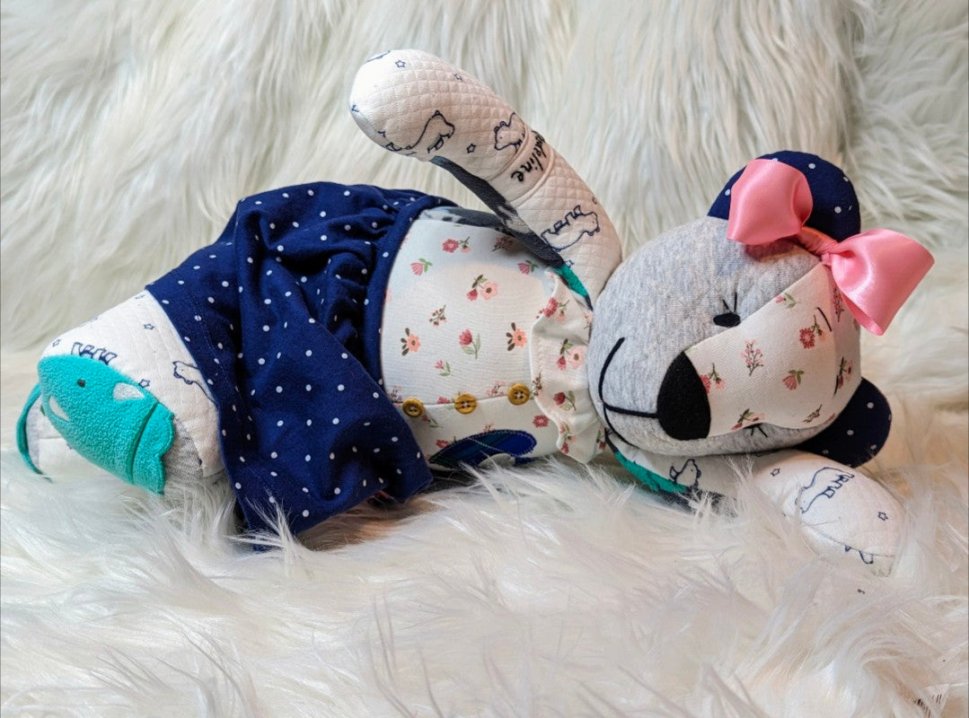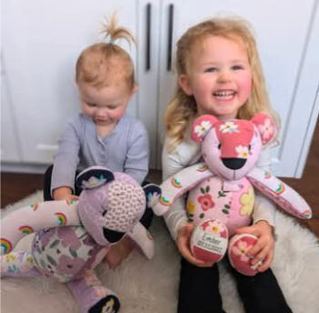 The girls (and mum) are over the moon with their custom cuddle bears made from their baby clothes! We can't thank Keepsakes by Julie - Memory Bears & Jewelry enough for the beautiful work she did- especially the special little details. It's so bitter sweet to see their tiny baby clothes be put out of commission, but I can't think of a better way to have them repurposed and loved forever as little cuddle bears for the girls. Absolute treasures.