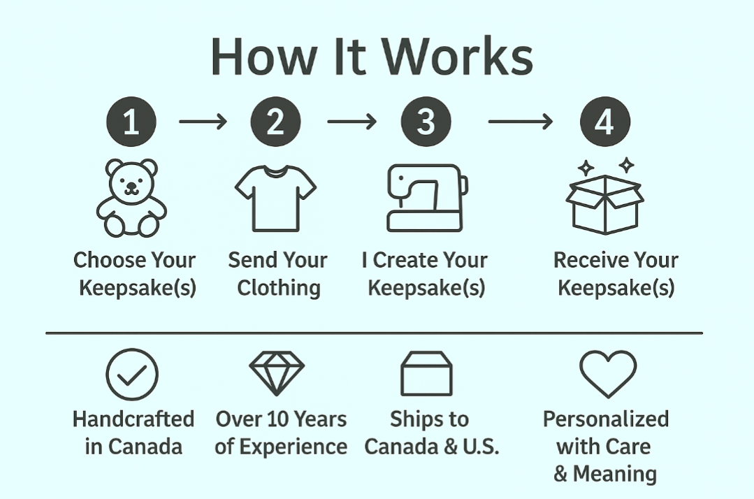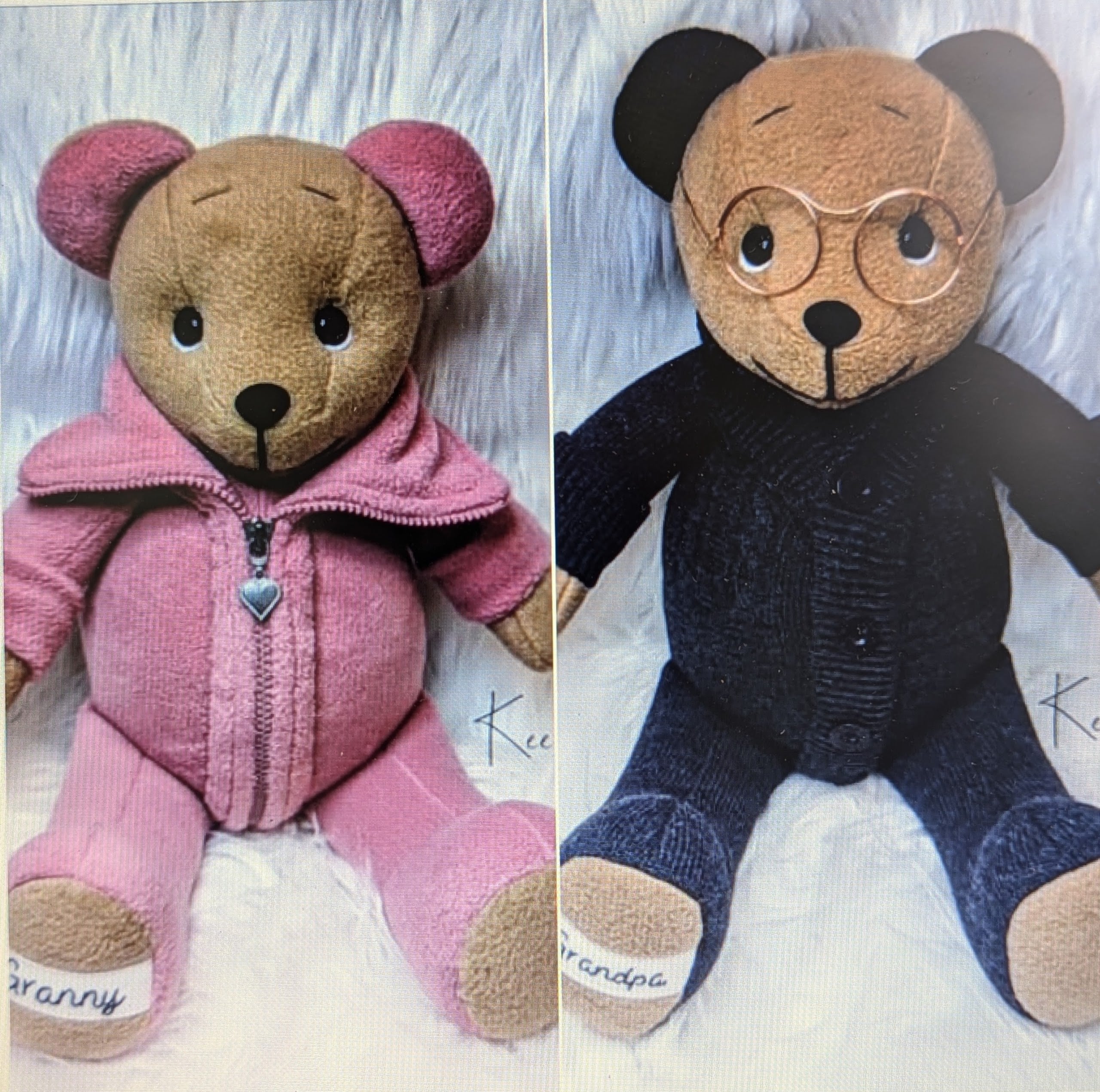 One day a while back I saw a post on Facebook « memory bears by Julie » i thought wow! I am going to like and follow her just because I thought this idea of making bears out of a loved one’s clothing was amazing. One day I reached out to her by msg on Facebook. I was booked for two bears. Everything was well explained and super easy. I love the detail and the love she puts in to each piece of work. Both bears where carefully packed and shipped, now they are home .Two beautiful bears for my boys to remember they’re grandma that loved them so much!! Thank you!