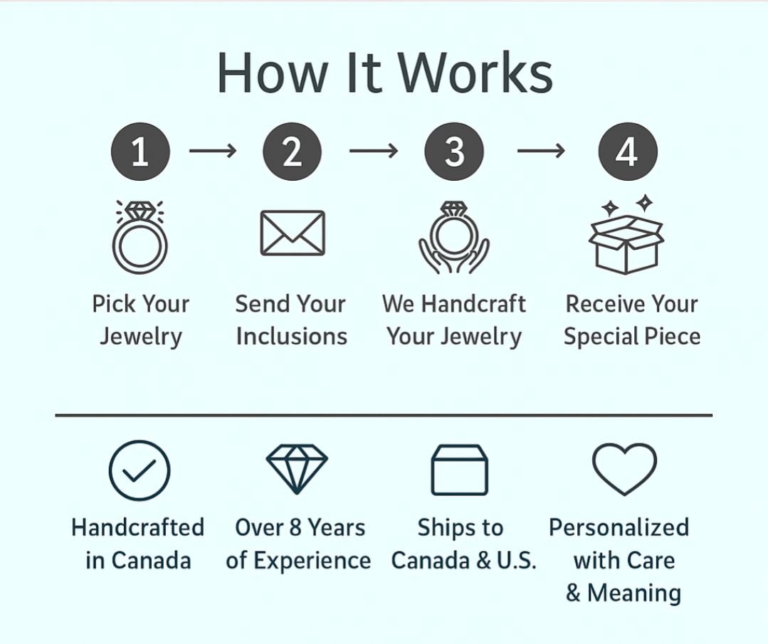 I am so happy with my beautiful breastmilk ring! It has breastmilk, pieces of my daughters umbilical cord, her birthstone crystals and some opal flakes to give it that shimmer! Julie was a joy to work with, answering any questions I had along the way and making the process so easy. Service was very fast and efficient, and I felt well appreciated as a customer. I will definitely be ordering again in the future. If you’re thinking about ordering, it’s so worth! Highly recommend.
