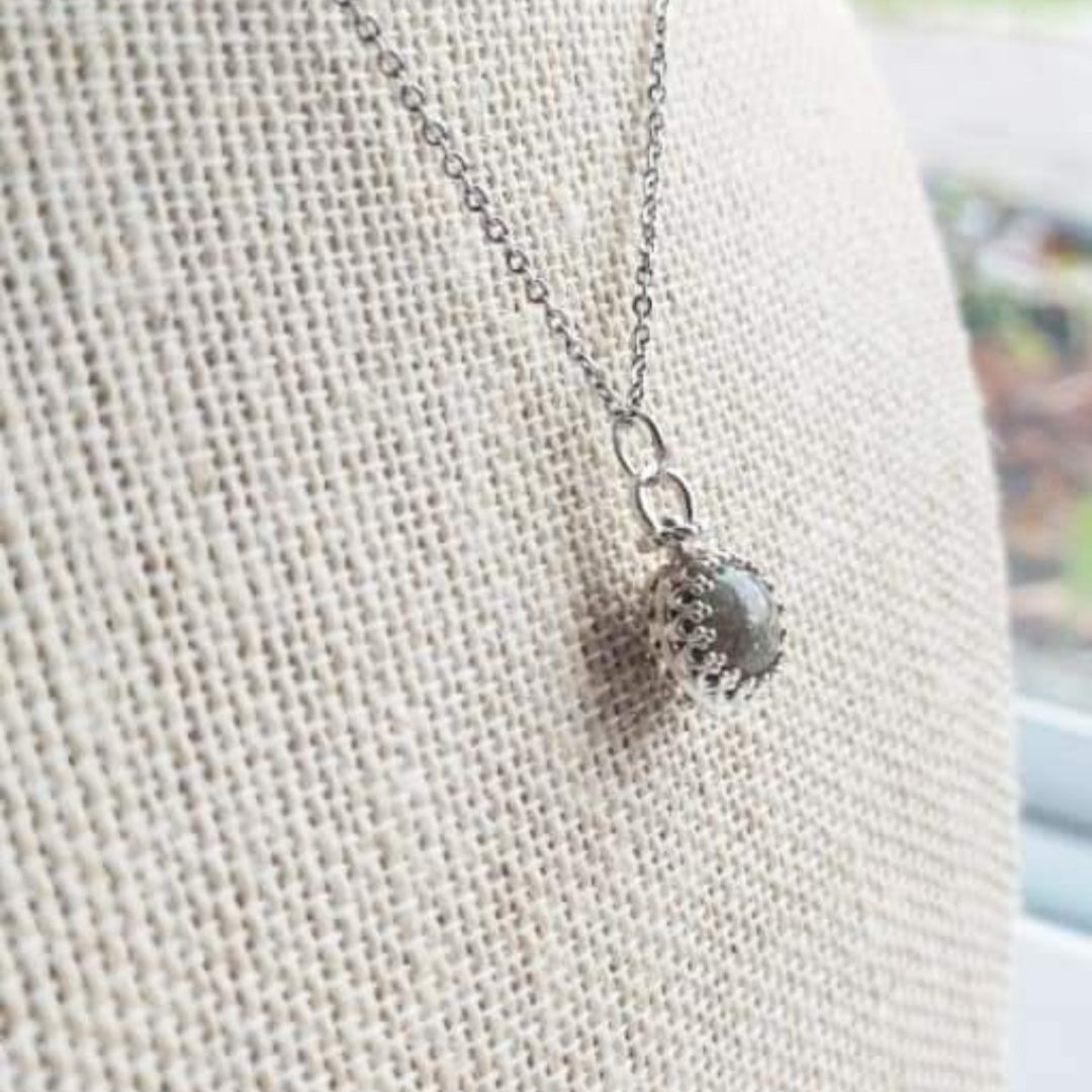 This beautiful 10 mm pearl is set in a revolving sterling silver crown setting (includes 18" chain)