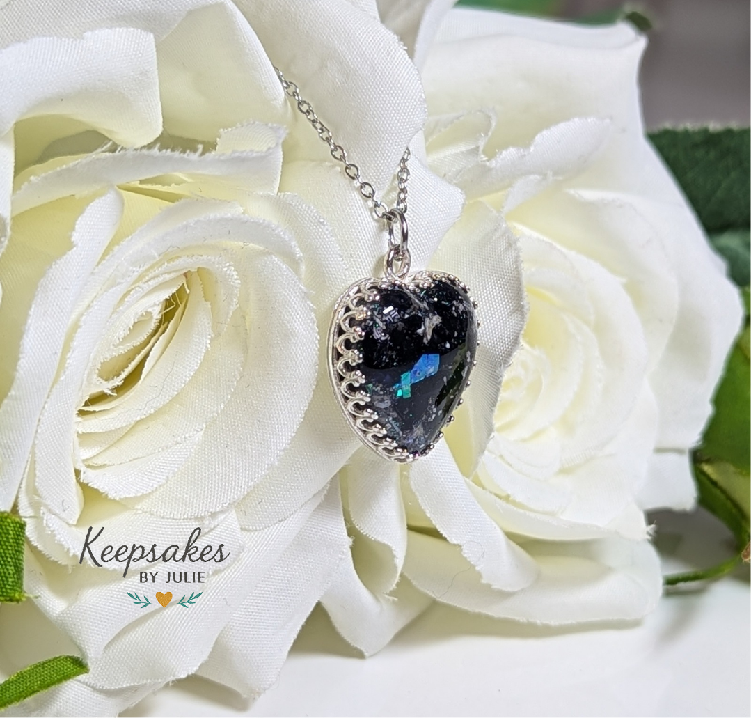 Natural variation in ashes, hair, and other materials — as well as small air bubbles, or mold lines are part of what makes each piece unique. These cosmetic differences do not affect the integrity of your keepsake. I do not offer remakes or refunds for these natural variations.