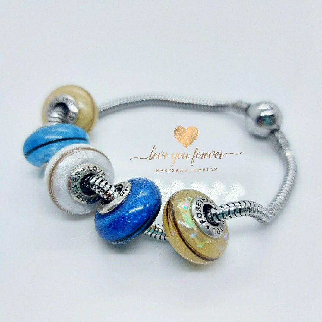 Natural variation in ashes, hair, and other materials — as well as small air bubbles, or mold lines are part of what makes each piece unique. These cosmetic differences do not affect the integrity of your keepsake. I do not offer remakes or refunds for these natural variations.