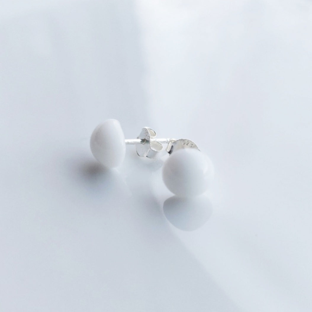 Half Pearl Earrings - 8 mm Sterling Silver posts