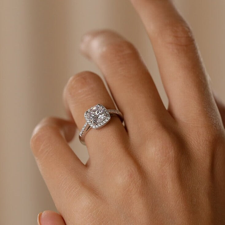 Heavenly Hidden Cushion Halo Ring